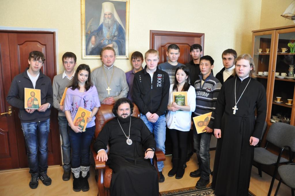 14 марта 2013 года в Знаменском зале Якутского епархиального управления прошла встреча епископа Якутского и Ленского Романа с делегатами Второго съезда православной молодежи Якутии.