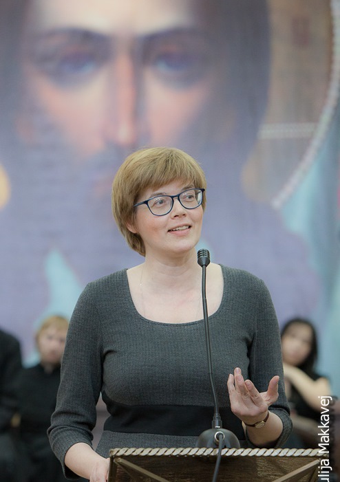 Своё отношение к понятию «православная литература» и на вопрос какова главная задача писателя, гостья из Москвы ответила: «Отец Дмитрий Смирнов, когда создавал православную гимназию, сказал, что само по себе понятие подобной гимназии – нонсенс. Может ли быть православным портфель? Мне это понравилось, и в отношении православных писателей я думаю примерно так же как про православный портфель – это не возможно в принципе. Православным может быть читатель. А если то, что он прочитал, резонирует с его верой, с вопросами, которые он себе задаёт, с его отношениями с Церковью, с Богом, – это только здорово.