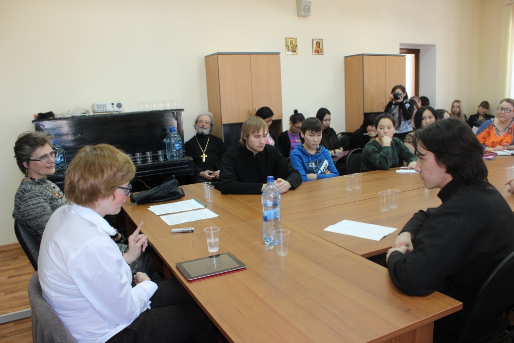 Под таким названием прошёл круглый стол с участием известной писательницы, литературоведа, журналиста, профессора факультета филологии Российского государственного университета экономики Майи Кучерской. Модератором стола была поэт и главный редактор якутской молодежной православной газеты «Логос» Ирина Дмитриева.